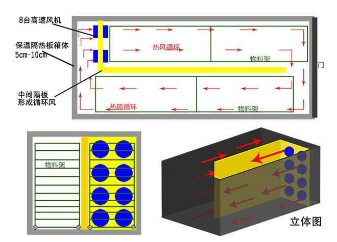 (1)烘干效率(產量)提高50%:舒適方便、自動化、智能化程度高,采用自動控恒溫裝置,24小時連續干燥作業,產能高;