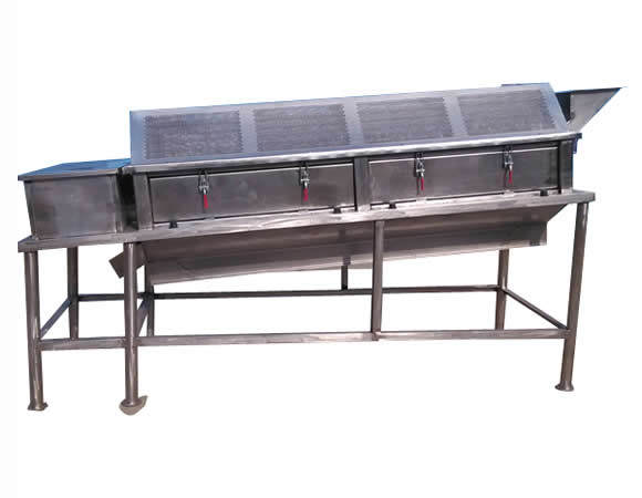 0371-666 99 708不銹鋼滾筒篩,包括臥式可轉動筒體和上密封蓋,其中筒體的頭部設有進料口,底部設有出料口,尾部設有排料口,上密封蓋設于筒體正上方,筒體傾斜安裝在托架上,并轉動支撐在兩側輥輪上,所述筒體由前向后至少分三段篩網逐級設置,各段篩網的網孔直徑由前至后為逐級變大,所述出料口有多個,各出料口分別與各段篩網相對應;所述滾筒篩各部分均采用不銹鋼材質制成.本實用新型能夠分選效果好,分選過程更加順暢。