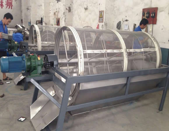 滾筒篩在運行中,由于回轉速度小,并且有密封隔離罩與外界隔離,使噪聲無法傳遞到外部,從而降低了設備噪音。滾筒篩是由若干個圓環狀網組成,其總篩分面積遠遠大于其它篩型的篩分面積,再加上篩分效率高,設備運行時間短,故而使用壽命較長,易損件少、維護量小。不銹鋼滾筒篩密封隔離上罩可以拆開,拆開后不影響機器正常運行,并且使得檢修非常方便。