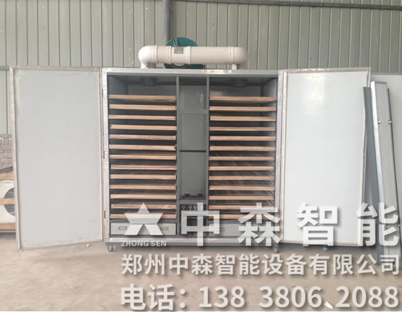 1.菇類烘干機準備好物料:采收前一天禁止澆水,適時采收。香菇應在四五成熟時采收,一般采收均不能超過八成熟。采收的香菇分好類,先在陽光下暴曬2-3小時,以去除部分水分。裝盤時使菌蓋朝上,菌柄朝下,擺均放正,不可重疊積壓,以防傷菇而影響質量。香菇采收后6小時以內需烘烤,如果有冷藏條件,保存時間可適當延長。