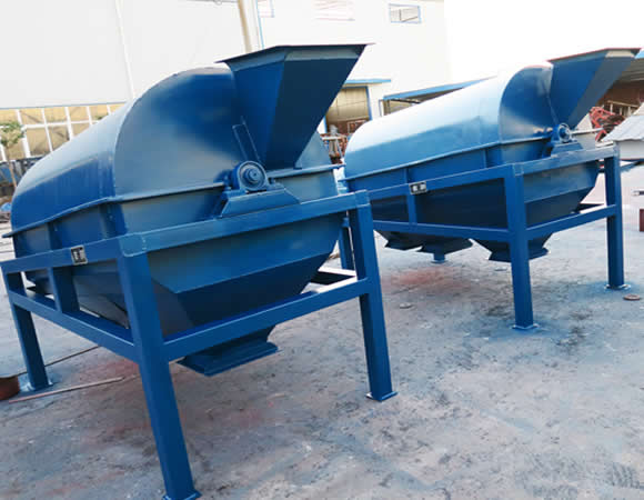 密封封閉式滾筒篩:密封式滾筒篩主要是由動力組件、粗料出料口、上密封殼、篩筒、篩下物出料口、擋料板、進料口、支架等部分組成的。滾筒篩通過變速減速系統使篩分筒在一定轉速下旋轉,其分級級數一般從細到粗為1-4節,物料自上而下通過篩分筒得到粉粒,細料從篩分筒前端下部排出,粗料從篩分筒下端尾部排出,實現物料分級目的。