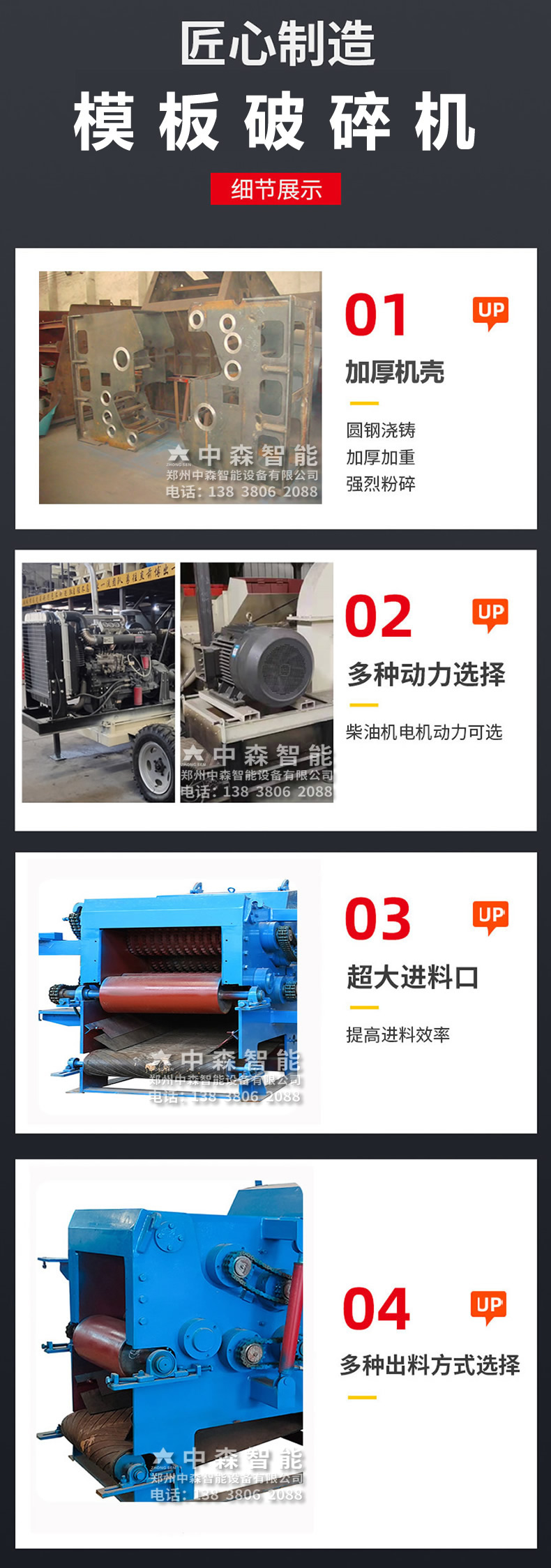 【產品介紹】中森智能專注廢舊模板破碎機20余年,從研發設計生產到銷售,現已形成一體化制造商以及售后服務商;移動式木頭破碎機是加工生物質顆粒,造紙,木炭,多種板材,食用菌,生物發電,園林,木屑,有機肥等農,林,工業生產配套設備.可粉碎多種雜木,木材,木頭,模板,邊角料,樹枝,竹子,園林綠化,食用菌等物料。