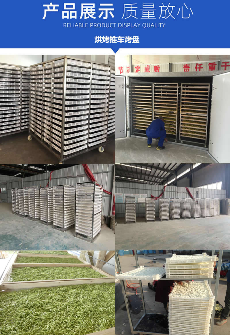 【系統配置】保溫烘房保溫箱體、推車、烘盤、電腦控制、熱風循環、智能排濕、自動補風等系統組成。