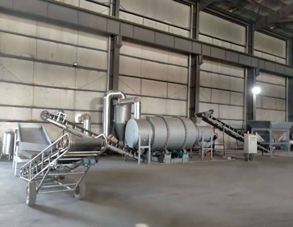 石英砂烘干機物料經過圓盤給料機給料到皮帶機上,由輸送機運輸到經過熱風爐的流沙管,通過流沙管進入到烘干機筒內,在內筒固定攪拌葉輪和向前旋葉片的作用下沙子很快向前推進,在此過程中與進入筒體內的熱氣流進行接觸。