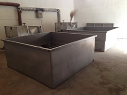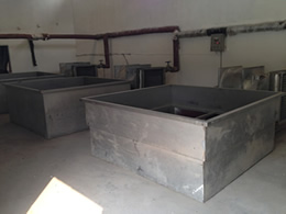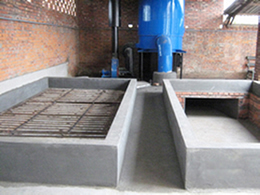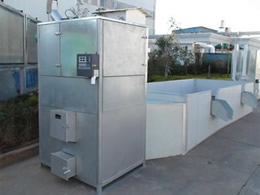 蒸汽脫水烘干池采用常溫空氣經熱交換器,交換使其變成高溫干燥熱空氣,通過鼓風機作用,讓熱空氣與物料進行熱交換而達到干燥效果。