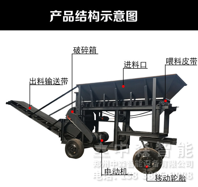 碎土機該機采用錘式破碎機原理特制又能破碎又可以切碎,又能打碎黏土,遇到硬質物體又能排出,本機設計破碎,輸送為一體有輪胎可以行走,不需要底座搞安裝,移動方便,電器設手動和遙控操作簡便安全。