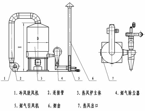 該爐為通用性熱風加熱裝置,與各種物料的干燥設備配套使用